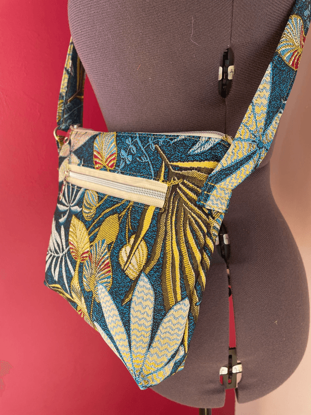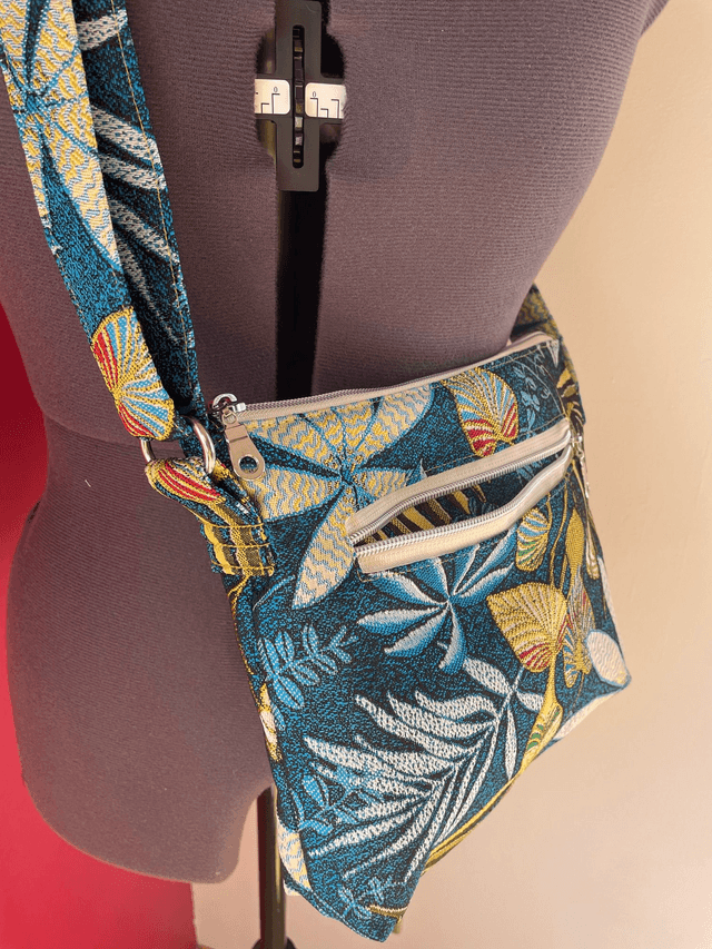 Le sac à main parfait pour toutes les occasions. Sa taille permet de ranger les indispensables dedans mais de rester discret et léger. Sa couleur est unique du fait de la disposition du motif. Il possède une grande poche sur le devant et un petite à l’intérieur. Sa anse est réglable de 75 cm à 145 cm environ.